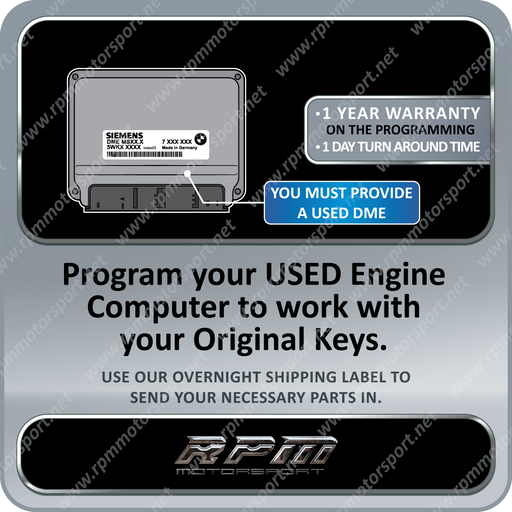 Save over 65% of the cost of the dealership when replacing your ECU / DME. The Used ECU / DME Programming Service resolves VIN and vehicle mismatch. Once you buy a used DME with the same part number as the original from a reputable source, we can then program it to work in your vehicle with the correct VIN number. Once you receive the Used ECU / DME back from us it will be Plug & Play, no other programming or coding is required.