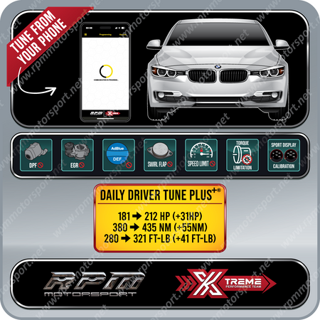 - Daily Driver Tune Plus power increase of +55HP & Torque increase of +93NM (69 ft-lbs).